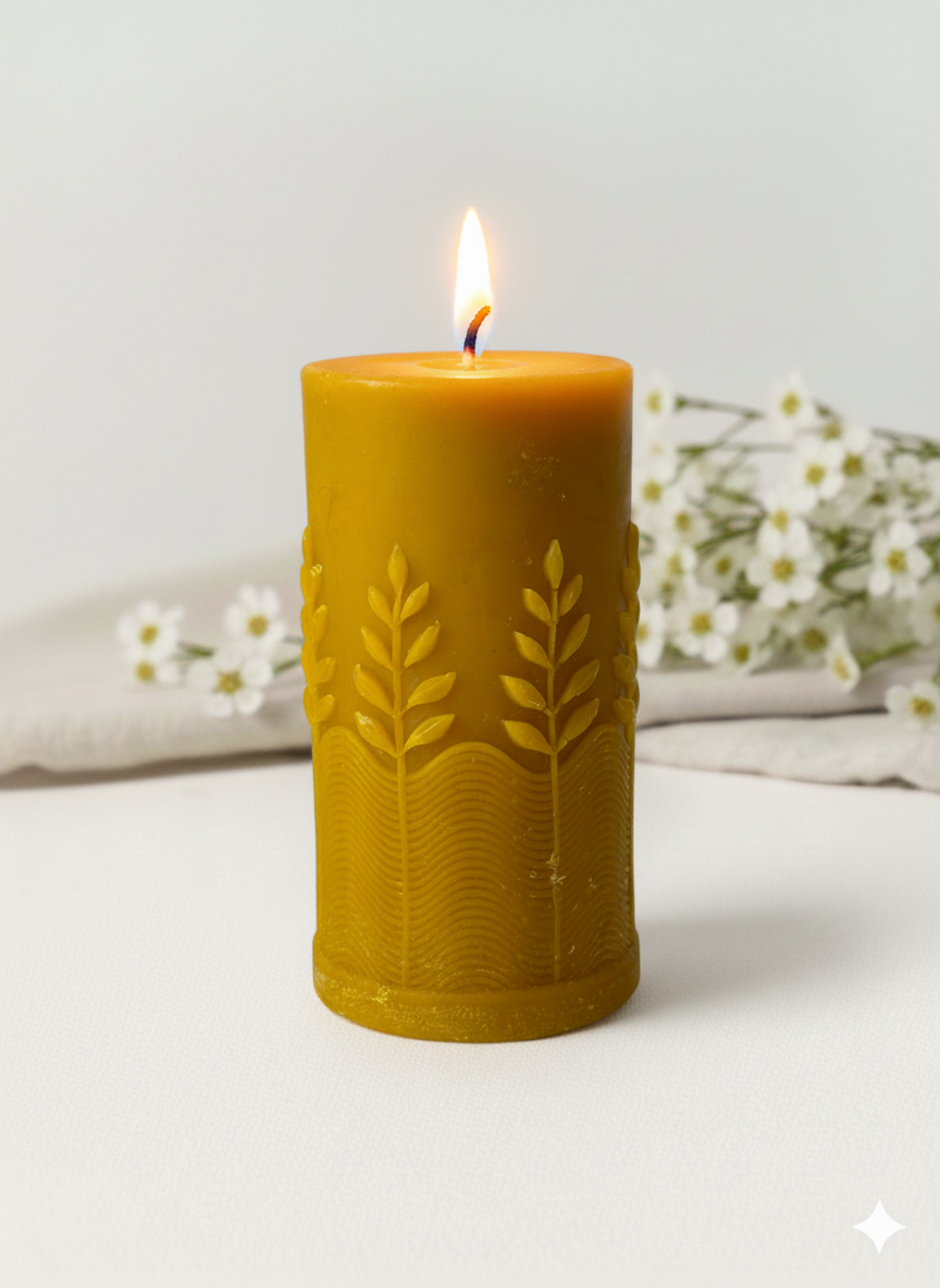 Świeca z 100% wosku pszczelego, która pali się dłużej i naturalnie oczyszcza powietrze, uwalniając subtelny miodowy aromat. Bez chemii i sztucznych dodatków – tylko czysta natura i tradycyjne rzemiosło dla Twojego zdrowia i spokoju.