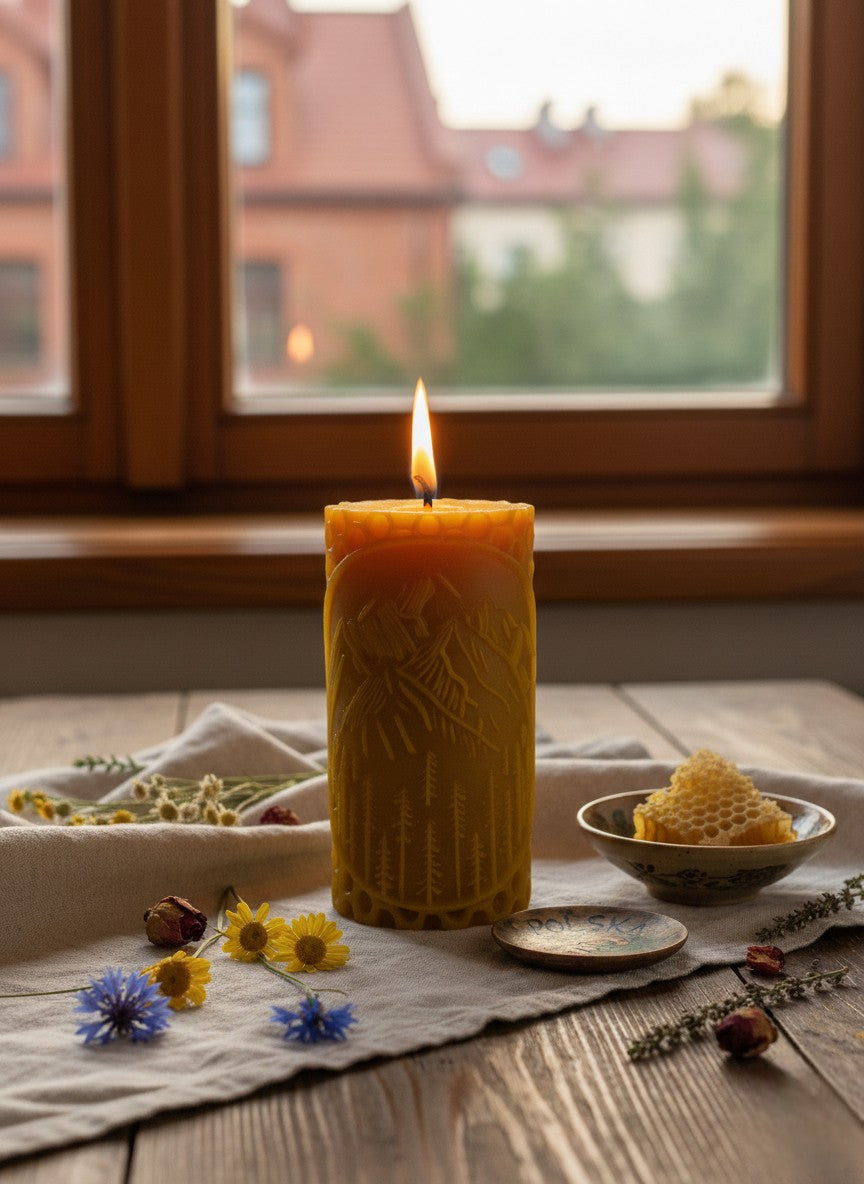 Ręcznie wykonane świece to wyjątkowy, osobisty upominek. Z formą APIMEL TATRY.2 zrobisz świecę, która zachwyci wyglądem i naturalnym zapachem wosku pszczelego.